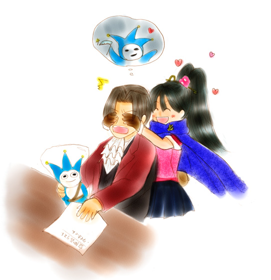 「こんにちは!ボク、プロトタイホくんだよ!」 「そのようなアレはやめたまえ!ミクモくん!」 * * * 逆裁5プレイ後、ついにナニカがたぎりました。 5をクリアした勢いでシリーズプレイしなおして、描かずにはいられなくなりました。 バンドーランドのプロトタイホくんのアレ(笑)を知ってるミクモちゃんなら、 きっと一度はこういうイタズラするんじゃないかなあ?なんて(人´∀`*) 逆裁でなるほどくんとマヨイちゃんになごむ一方で、 逆検では御剣とミクモちゃんが好きすぎてやばいです。 ミクモちゃんのいたずらに翻弄される御剣が大好物です。 …基本ギャグ脳でごめんなさい>< 2013年9月作成 |