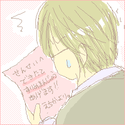 「ボク、せんせいに紅白すりめまんじゅうあげます!」 |
