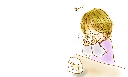 にくまん食べるえちかです。 元々2月頃に描いたらくがきを3月に使うという 季節ハズレ具合が既にツッコミどころなのですが(笑) えちかが言ってる「あついよ…」は、 なにげにダブルミーニングの気配がします、 にくまんも熱いですが、このサイトも熱いんです(たぶん) どうでもいいことですが、このえちか。 おなかが…すごいもっちゃりしてますね(汗) …一体いくつにくまん食べたんでしょうか…(涙目) 絵が表示されなかった方は、コチラをどうぞv 2007年3月作成 |